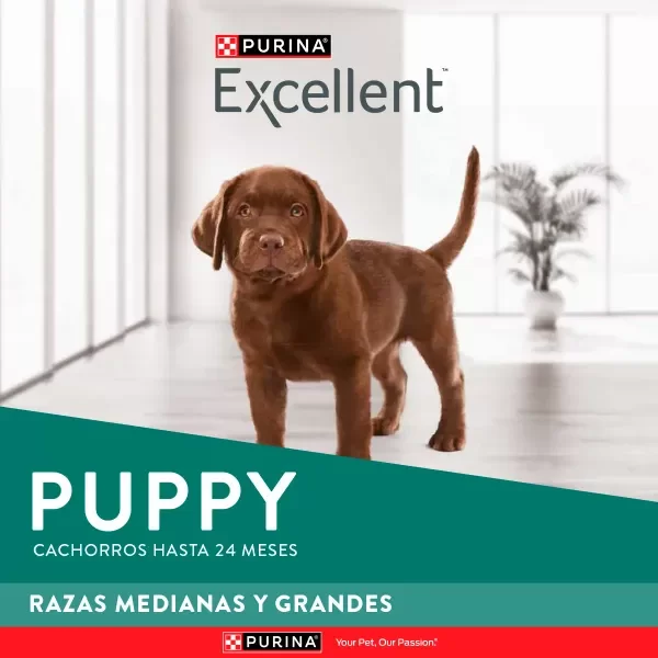 PURINA® EXCELLENT™ le ofrece a tu cachorro una nutrición que favorece su desarrollo y crecimiento. Con proteínas de alta calidad e inclusión del prebiótico natural que colabora con una buena salud digestiva.