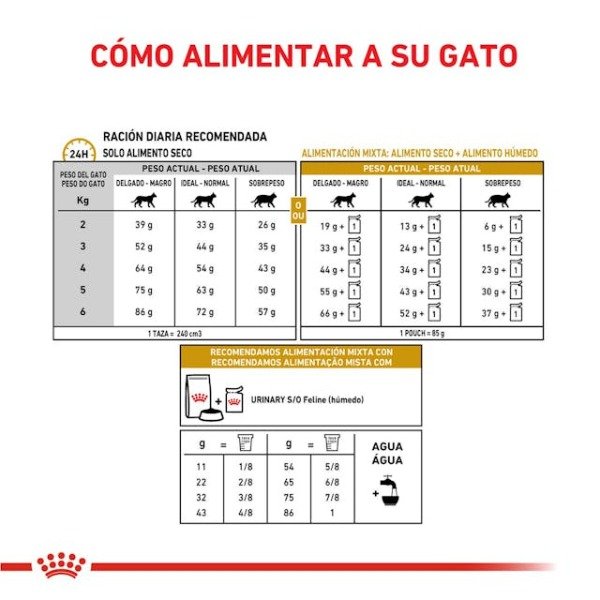 Alimento para gatos adultos, formulado para promover una alta dilución urinaria, ayudando a la disolución de cálculos de estruvita. Contribuye al manejo nutricional de los cálculos de oxalato de calcio y de estruvita, reduciendo su recurrencia mediante el uso único de esta dieta.
